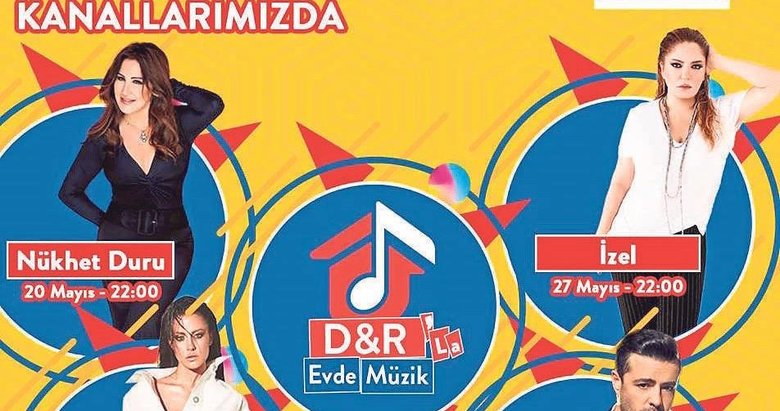 Birbirinden değerli sanatçıların kulakların pasını sileceği D&R'la Evde Müzik başladı. Her Çarşamba farklı bir şarkıcı D&R'ın Instagram hesabı ve Youtube kanalında müzikseverlerle buluşacak. Geçen Çarşamba Nükhet Duru'yu izleyen takipçiler bundan sonra ise 27 Mayıs saat 22.00'de İzel, 3 Haziran saat 22.00'de Derya Uluğ, 10 Haziran saat 22.00'de Burak Kut'u dinleme şansını yakalayacak.