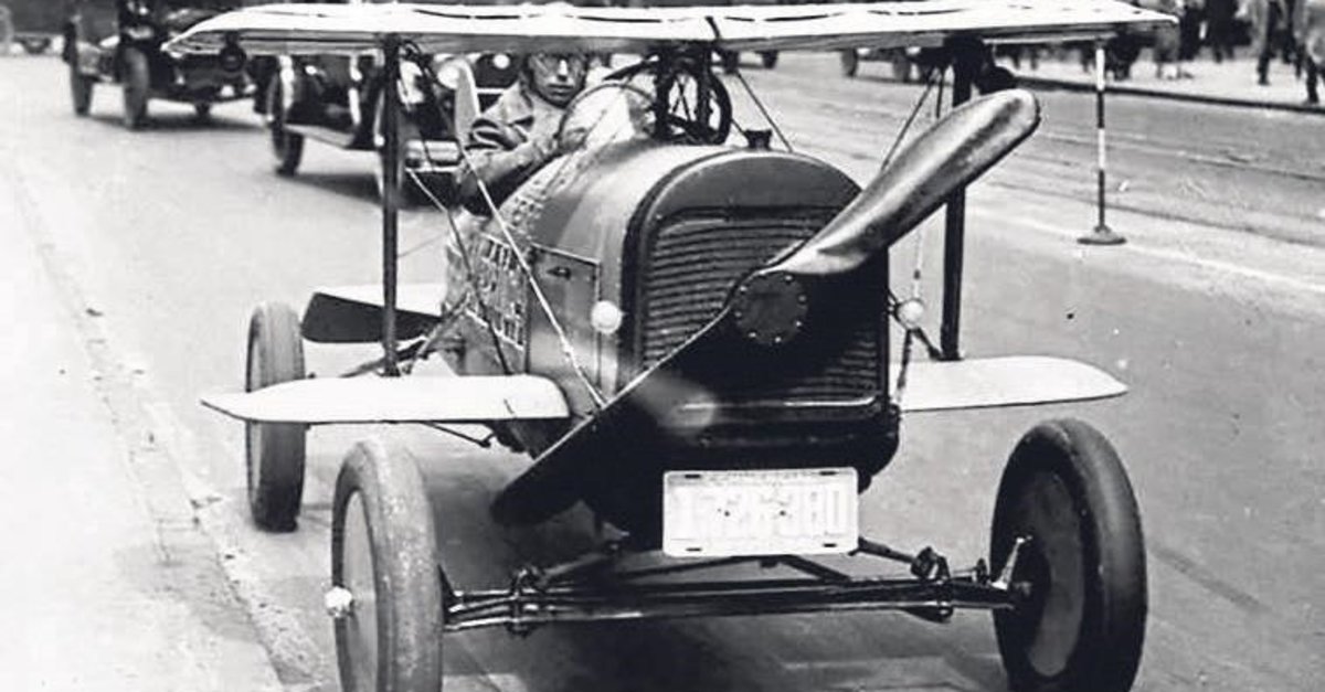 Kanatları olan bir otomobil ve radyatör ızgarasından çıkıntı yapılan bir pervane... 1924'te New York Times Meydanı'ndan işte bu şekilde geçti.