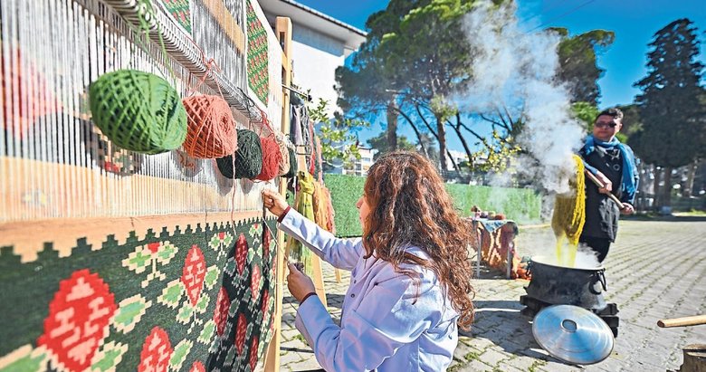 USTA öğretici Hakan Çağan ise tamamen geleneksel yöntemlerle elde ettikleri kök boyalı iplerle enstitü içerisinde geleneksel motiflerin tekrar hayat bulmasını sağladıklarını anlattı. Yaptıkları araştırmalar sonucunda, ipleri, Ege Bölgesi'nde yetişen bitkilerle, atölyelerde öğütme yöntemiyle elde ettikleri boyaları geleneksel yöntemlerle kazanlarda kaynatıp renklendirdiklerini dile getiren Çağan, "Daha sonra tasarımları yapılan dokumaların, bu iplerle dokumasını gerçekleştiriyoruz. Oluşturduğumuz boyaların reçetelerini geleceğe aktarmak adına her ayrı rengin, her tonun reçetelerini oluşturuyoruz ve bunları arşivliyoruz" dedi.