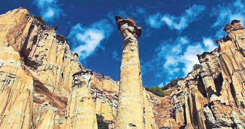 Aşınma mekanizması, Nevşehir'deki peribacalarıyla aynı. Yukarıda bir şapka dediğimiz yer, gövdesine göre daha sert bir yapı. Altında da suyun ve rüzgarın daha kolay aşındırdığı, gövde dediğimiz yapısıyla gördüğümüz şekilleri oluşturuyor" dedi.