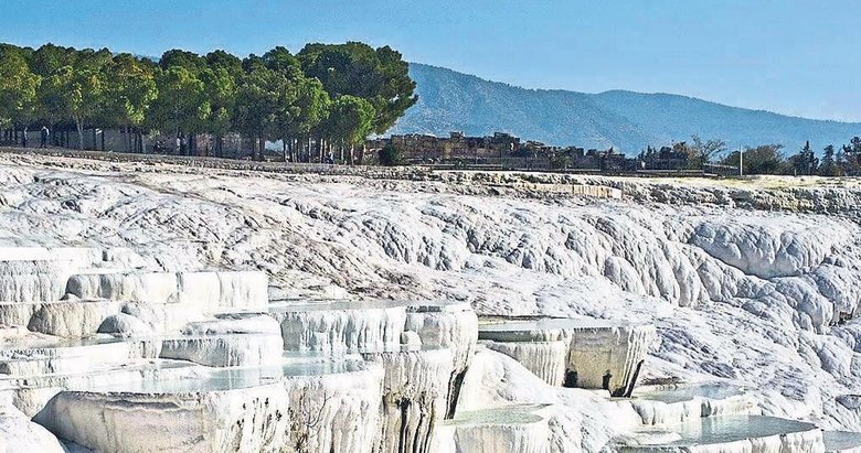 Pamukkale travertenleri antik kentler kadar ünlüdür. Dahası çağlar önce kurulup sonrada yıkılan antik kentlere tanıklık etmiştir. Gezi rotanıza eklemekte büyük yarar var. Travertenler aslında çok yönlü, çeşitli nedenlere ve ortamlara bağlı, kimyasal reaksiyonlar sonucu çökelme ile oluşan bir kayalardır. Pamukkale termal kaynağını meydana getiren jeolojik olaylar geniş bir bölgeyi etkilemiştir. Bu bölgede sıcaklıkları 35-100 C arasında değişen 17 sıcak su alanı bulunmaktadır. Pamukkale termal kaynağı antik dönemlerden beri kullanılmaktadır. Zaman içinde sertleşmekte ve traverten olmaktadır. Ancak ziyaretçiler tarafından katkatlar üzerinde gezilmesi ve oynanması, henüz yumuşacık haldeki kalsiyum karbonatların ezilmesine, dağılmasına neden olmaktadır.