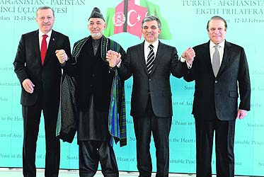 Cumhurbaşkanı Abdullah Gül, Afganistan Cumhurbaşkanı Hamid Karzai ve Pakistan Başbakanı Navaz Şerif ile 3'lü zirve toplantısının 8'incisini gerçekleştirdi. Cumhurbaşkanı Gül'ün ev sahipliği yaptığı zirve Çankaya Köşkü'nde yapıldı. Zirvenin, "Kısıtlı Katılımlı Üçlü Zirve Toplantısı"na Başbakan Tayyip Erdoğan da katıldı. Toplantının ardından Gül, Karzai, Şerif ve Erdoğan, fotoğraf çekimi için basın mensuplarının karşısına geçti. Gazetecilerin isteği üzerine liderler, el ele tutuşarak poz verdi.