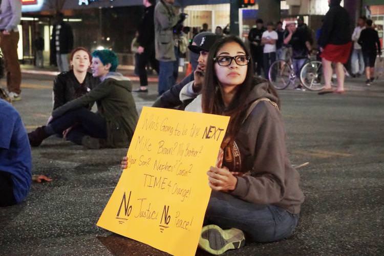 Bir polis aracı ateşe verilirken, polis göstericileri biber gazıyla dağıttı. Gösterilerin şiddete dönüşmesi ihtimali üzerine gruptan dağılmasını ve evlerine gitmesini isteyen polis, ayrılmamakta direnen onlarca kişiyi Ulusal Muhafız Birlikleri yardımıyla gözaltına aldı. Ferguson'un dışında aralarında New York, Washington, Atlanta, Los Angeles, Chicago'nun da bulunduğu birçok kentte gösteriler düzenlendi. Gösterilerin genel olarak barışçı şekilde sürdüğü bildirildi. New York'ta Union Square'de toplanan yüzlerce gösterici New Jersey ile New York'u birbirine bağlayan Lincoln tüneline doğru yürüyerek tüneli trafiğe kapatmak istedi ancak polis göstericileri engelledi. Tünelden Times Square'e geçen göstericiler, burada 7. caddeyi trafiğe kapatmak isteyince polis grubu dağıtmak için biber gazı ile müdahale etti. Müdahale sırasında polis bazı göstericileri gözaltına aldı.