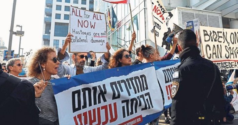 İSRAİL medyasına göre, İsrailli ve Amerikalı onlarca kadın ve Gazze'deki esir İsraillilerin yakınlarının katıldığı gösteride, "Gazze ile acil ateşkes ve esir takası anlaşması" yapılmasını talep eden sloganlar ile ABD Başkanı Joe Biden'a yönelik "Biden, sadece sen onları kurtarabilirsin" yazılarının olduğu pankartlar taşıdı.