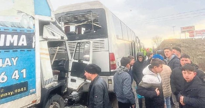 AFYONKARAHİSAR'DA kamyonetin halk otobüsüne arkadan çarptığı trafik kazasında biri ağır 3 kişi yaralandı. Kaza, Afyonkarahisar- Uşak karayolunda bulunan Karahisar Tüneli çıkışında sabah saatlerinde meydana geldi. Seyir halindeki Taşoluk beldesine ait halk otobüsüne arkadan kamyonet çarptı. İhbar üzerine bölgeye sağlık ekipleri sevk edildi. Sağlık ekipleri yaralandığını belirlediği 1'i ağır 3 kişiyi hastaneye sevk etti. Kazayla ilgili polis tarafından başlatılan inceleme devam ediyor.