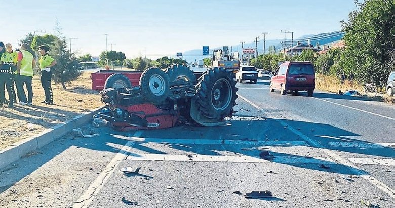 AFYONKARAHİSAR'DA otomobilin çarpması sonucu devrilen traktör sürücüsü olay yerinde hayatını kaybederken kazada bir çocuk da yaralandı. Kaza, Sultandağı ilçesi Dereçine beldesi yakınlarında meydana geldi. Edinilen bilgilere göre, R.E. idaresindeki otomobil önünde seyreden S.A'nın kullandığı traktöre arkadan çarptı. Çarpmanın etkisiyle kontrolden çıkan traktör yol kenarındaki kaldırıma çıkarak devrildi. Kazada traktör sürücüsü S.A, olay yerinde hayatını kaybederken yanında bulunan 2 yaşındaki C.D. ise yaralandı.