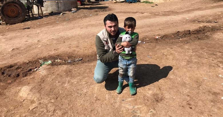 Oyuncağı eline alınca mutluluğu gözlerine yansıyan Suriyeli çocuk, iyilik meleği Behlül'e teşekkür etti.