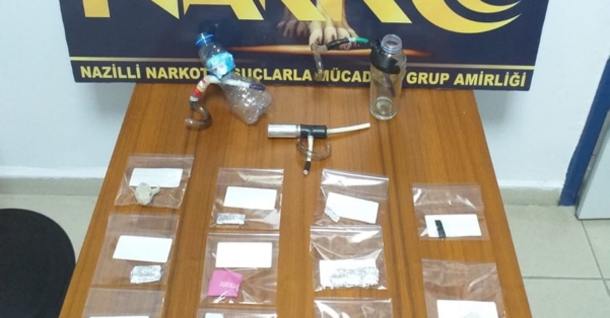 Edinilen bilgiye göre, Nazilli Narkotik Suçlarla Mücadele Grup Amirliği ekipleri uyuşturucu madde satışı yapıldığı bilgisi üzerine K. S. ,O. E., B. D., ve G. K. isimli şahısların bulunduğu ikamette yaptığı aramada satışa hazır halde 12. 36 gram Eroin maddesi, 9.35 gram Metanfetamin maddesi ve 7.12 gram esrar maddesi ele geçirdi. Uyuşturucu madde ticareti suçundan mahkemeye sevk edilen 4 şahıstan G.K adli kontrol şartıyla serbest kalırken K. S. ,O. E., B. D., isimli 3 şahıs tutuklandı. Ayrıca Nazilli Narkotik Grup Amirliği ekipleri uyuşturucu madde ticareti suçundan kesinleşmiş 13 yıl hapis cezasıyla aranan U.G isimli şahısı kıskıvrak yakalayıp cezaevine gönderdi.