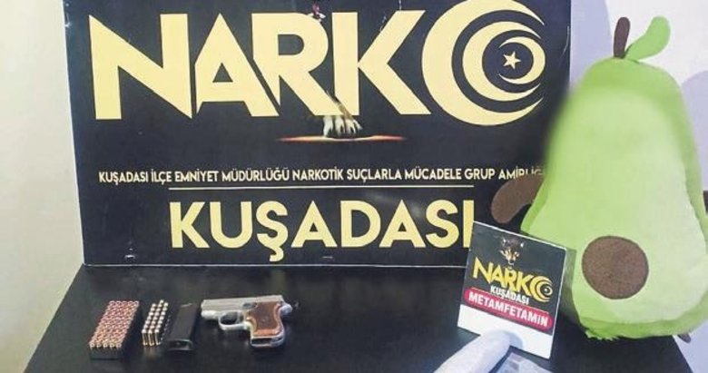 Kuşadası İlçe Emniyet Müdürlüğü ekipleri, ilçeye uyuşturucu madde getirileceği yönünde ihbar üzerine harekete geçti. Polisler, otogar içerisinde iki kişiyi yakaladı. Yakalanan kişilerin, yapılan GBT sorgulamasında A.B. ve E.K.K. isimli kadın olduğu tespit edildi. Sırt çantasındaki peluş oyuncak içerisinde toplam 124,65 gram kristal olarak tabir edilen metamfetamin uyuşturucu madde ile 1 adet kuru sıkıdan çevirme tabanca ve 72 adet bilyeli fişek ele geçirildi A.B ve E.K.K. çıkarıldıkları adli makamlarca tutuklanarak cezaevine gönderildi. ■ İBRAHİM UZUN