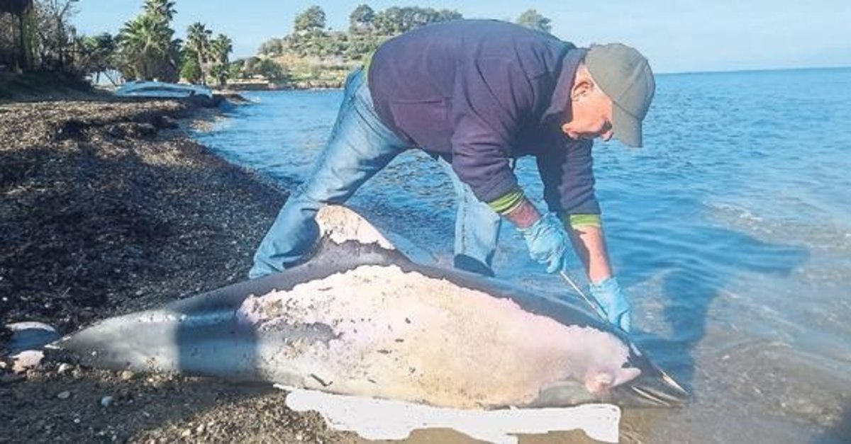 KUŞADASI Yılancı Burnu plajına ölü bir yunusun vurduğunu fark eden Aydın Büyük Şehir Belediyesi plaj görevlileri, Ekosistemi Koruma ve Doğa Severler Derneği'ne ihbarda bulundu. Denizden karaya alınan yaklaşık 2 metre boyundaki yunusun 'Stenella coeruleoalba türü' çizgili yunus olduğu tespit edildi. Yapılan kontrollerde yunusun çene altında bir delik olduğu belirlenirken duyarsız kişilerce kasti öldürüldüğü tahmin ediliyor.
