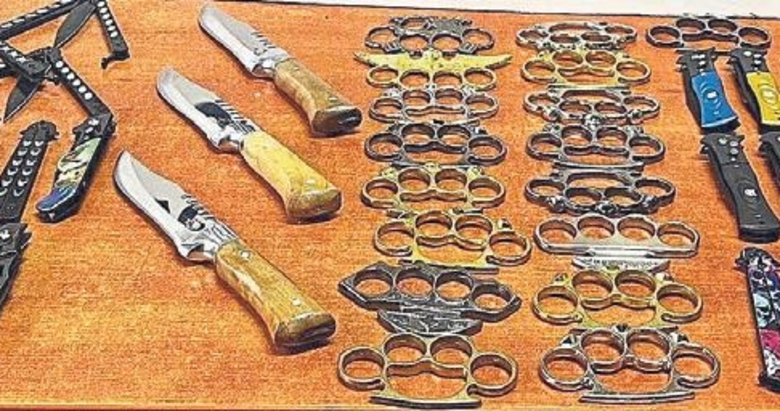 AYDIN'IN İncirliova ilçesinde polis ekipleri, yaptıkları denetimde 49 bıçak ve 17 metal muşta ele geçirdi. İncirliova İlçe Emniyet Müdürlüğü ekipleri, Sevgi Yolu'nda denetim gerçekleştirdi. Yaptıkları denetimde polis ekipleri, 2 farklı tezgahta satışa hazır vaziyette 10'u sustalı, 21'i kelebek ve 18'i de farklı renk ve özellikte olmak üzere toplam 49 bıçak ve 17 metal muşta ele geçirdi. Bıçak ve muştalara geçici olarak muhafaza altına alan ekipler, şahıslar hakkında soruşturma başlattı.