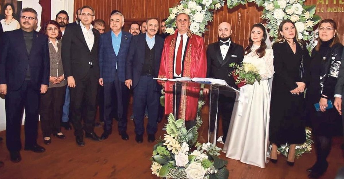 İNCIRLIOVA Belediye Başkanı AK Partili Aytekin Kaya, kızı Nilüfer Büşra Kaya ile AK Parti Aydın İl Tanıtım ve Medya Başkanı Yasin Gülpolat'ın nikahını kıydı. Nikah törenine Kaya ve Gülpolat aileleri ve akrabalarının yanı sıra Orman ve Su İşleri eski Bakanı Prof. Dr. Veysel Eroğlu, AK Parti Aydın Büyükşehir Belediye Başkan Adayı Mustafa Savaş, AK Parti Aydın Milletvekili Ömer Özmen, İncirliova Kaymakamı Canan Hançer Baştürk, AK Parti İl Başkanı Gökhan Ökten, İl Kadın Kolları Başkanı Ebru Alp Kayır, Nazilli Belediye Başkanı Kürşat Engin Özcan, Koçarlı Belediye Başkanı Nedim Kaplan ve çok sayıda davetli katıldı. Genç çiftin nikahını, gelinin babası olan İncirliova Belediye Başkanı Aytekin Kaya kıydı. Bir ömür boyu birlikteliğe 'evet' diyen çiftin şahitliğini aralarında eski Bakan Eroğlu ve Başkan Adayı Savaş'ın da bulunduğu protokol üyeleri yaptı.