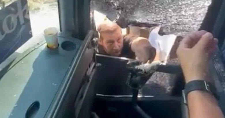 Tartışmanın büyümesi üzerine otomobildeki kişiler, otobüsün önünü keserek sürücüye hakaret etti ve aracı taşladı. Saldırı anları, otobüs içerisindeki yolcular tarafından cep telefonu kamerasıyla kaydedildi.