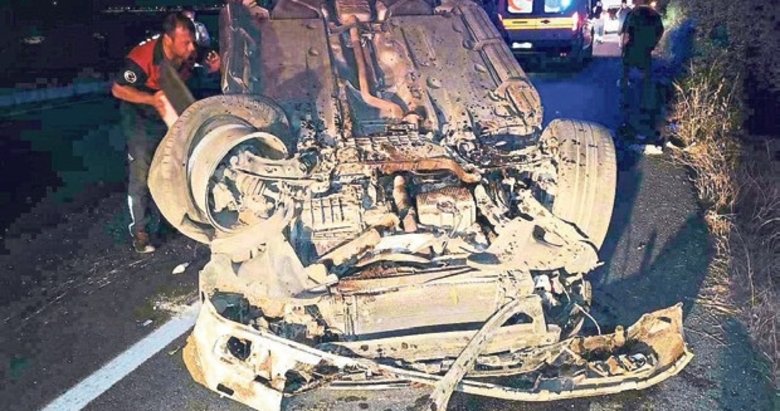 ALMANYA'DAN memleketine gelen ailenin içinde bulunduğu otomobil, yola aniden çıkan köpeğe çarpmamak için yapılan manevra sonucu kontrolden çıktı.