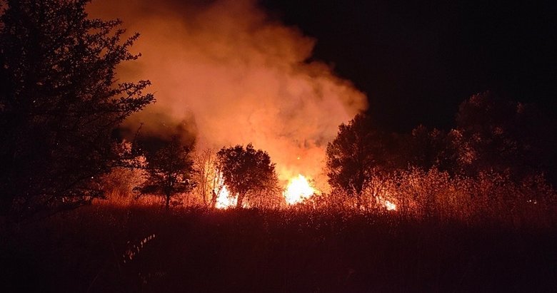 Aydın Kuşadası'nda park halindeki otomobilde çıkan yangın, LPG tankının patlamasıyla büyüdü. Alevler zeytin bahçesine sıçrarken, araç tamamen küle döndü.