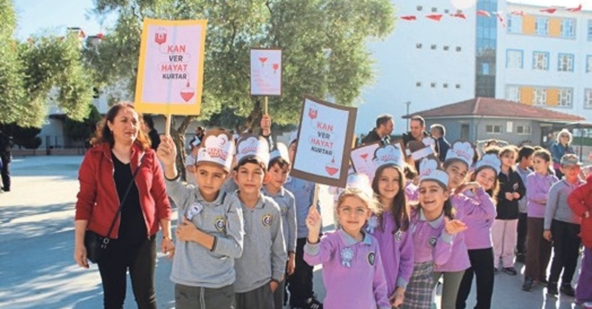 AYDIN'IN Efeler ilçesinde minik öğrenciler kan bağışının önemine dikkat çekti. Kızılay Haftası kapsamında Ekrem Çifçi İlkokulu'nda kan bağışı etkinliği gerçekleştirildi. Okul bahçesinde kan bağışı standı açılırken, mini öğrenciler de hazırladıkları programda kan bağışının önemine dikkat çekti. Saygı duruşu ve İstiklal Marşı'nın okunmasıyla başlayan programda kanın her zaman ihtiyaç olduğuna dikkat çeken Türk Kızılay Ege Bölge Kan Merkezi Müdürü Doktor Barış Dolaş, geleceğin kan bağışçısı öğrencilere teşekkür etti. Minikler Kızılay Marşı'nı söyleyerek hazırladıkları pankartlarla da kan bağışının önemine dikkat çekti. Halk oyunları gösterisinin ardından veliler, öğretmenler ve çevredeki vatandaşlar da hazırlanan standı ziyaret ederek kan bağışında bulundu.
