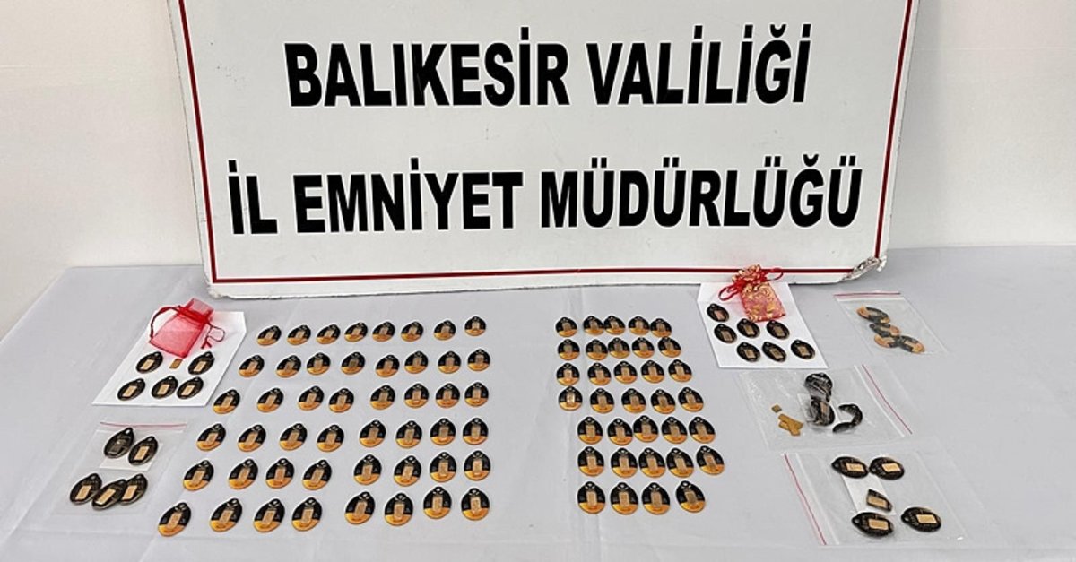 Balıkesir'de 5 Eylül'de kuyumcu esnafına sahte altın bozdurarak piyasaya sürmeye çalışan suç organizasyonuna yönelik Balıkesir İl Emniyet Müdürlüğü Kaçakçılık ve Organize Suçlarla Mücadele Şube Müdürlüğü ekipleri çalışma başlattı. Organizasyonda yer aldığı tespit edilen şüpheli şahıslar, Sakarya İl Emniyet Müdürlüğü KOM ekipleri ile koordineli yapılan çalışmalar neticesinde geçtiğimiz gün yine piyasaya sahte altın satışı yaparken suçüstü yakalandı. Balıkesir merkezli İstanbul ve Sakarya illerinde gerçekleştirilen eş zamanlı operasyonda E.C. (22), B.B. (20), A.Ş. (19) ve E.İ. (19) isimli şahıslar gözaltına alınırken, toplam 115 adet sahte altın ele geçirildi.