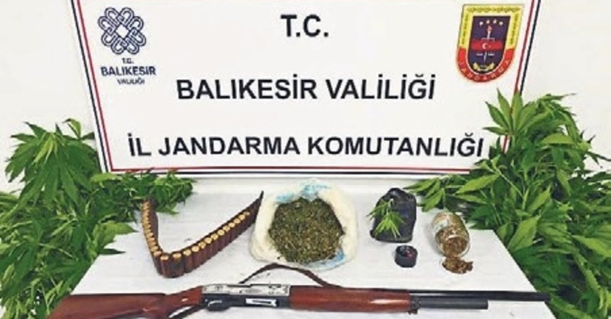 Erdek ilçesindeki bir bağ evine jandarma ekiplerince düzenlenen uyuşturucu operasyonunda kenevir bitkisi ve esrar maddesi ele geçirildi. Bağ evinde yapılan aramalarda, 93 kök kenevir bitkisi, 2 bin 840 gram kubar esrar, 10 gram kenevir tohumu, 1 adet esrar öğütme aparatı ve 23 adet av tüfeği fişeği ele geçirildi. Şüpheli M.G. (49) hakkında yasal işlem başlatıldı.