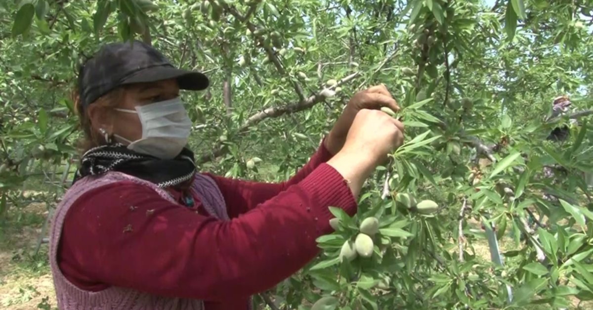 Çağla, diğer adıyla badem bahçelerinde 10 yıldır çalıştığını söyleyen işçi Fatma Yılmaz ise ağaçların yapraklarından dolayı zor olsa da iyi bir hasat dönemi geçirdiklerini kaydetti.
