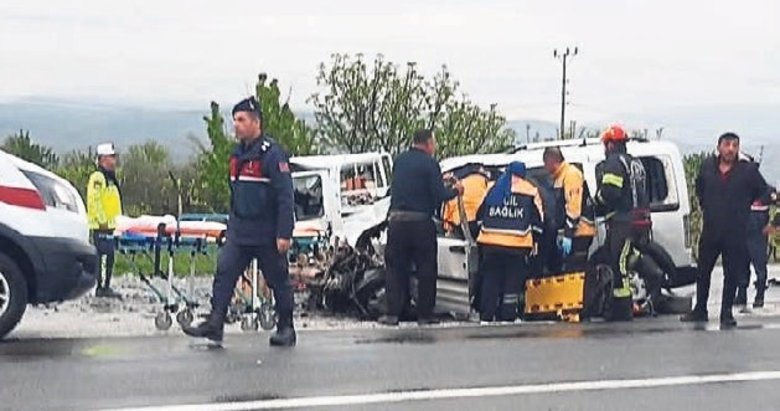 Manisa karayolu üzerinde meydana geldi. Bölgeye gelen sağlık ekipleri kazada yaralanan Y.A. , A.A. , İ.T. ve İ.F.T'ye ilk müdahaleyi olay yerinde yaptıktan sonra en yakın hastaneye ambulans ile sevk etti. Kaza sonucu iki araç hurdaya dönerken yaralıların hayati tehlikesi olmadığı öğrenildi.
