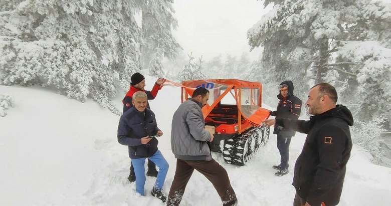 KÜTAHYA'DA kar ve sis nedeniyle yollarını kaybedip traktörün lastikleri kara batan üç kesim işçisi, ormanlık alanda mahsur kaldı. AFAD ekiplerine konum atıp yerlerini bildiren ve donma tehlikesi yaşayan işçiler ölümden döndü. İl merkezine 30 kilometre uzaklıktaki Kirazlıyayla mevkisinde özel bir şirkete bağlı olarak ağaç kesimi yapan 3 kişi, 112 Acil Çağrı Merkezi'ni arayarak yoğun kar ve sis nedeniyle yollarını kaybettiklerini bildirdi. Paletli araçla kar kalınlığının yaklaşık 50 santimetreyi bulduğu bölgeye 3 saatte ulaşan ekip, mahsur kalan Hasan Öztürk (58), Adem Aydın (53) ve Adem Çakır'ı (42) kurtardı.