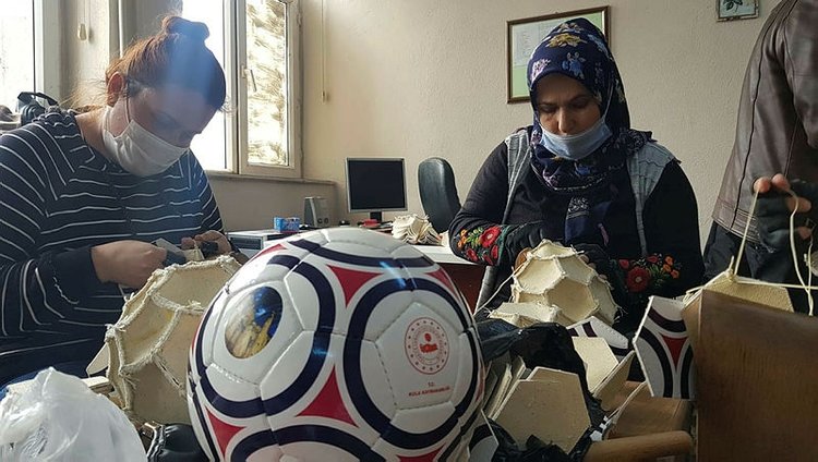 Devlet destekli olarak kursta çalışan kadınlar, el dikimi top ustası Hüseyin Şentürk'ten aldıkları eğitimle ürettikleri ilk el dikimi futbol topunu, Kula Kaymakamı Kemal Duru'ya hediye ettiler.