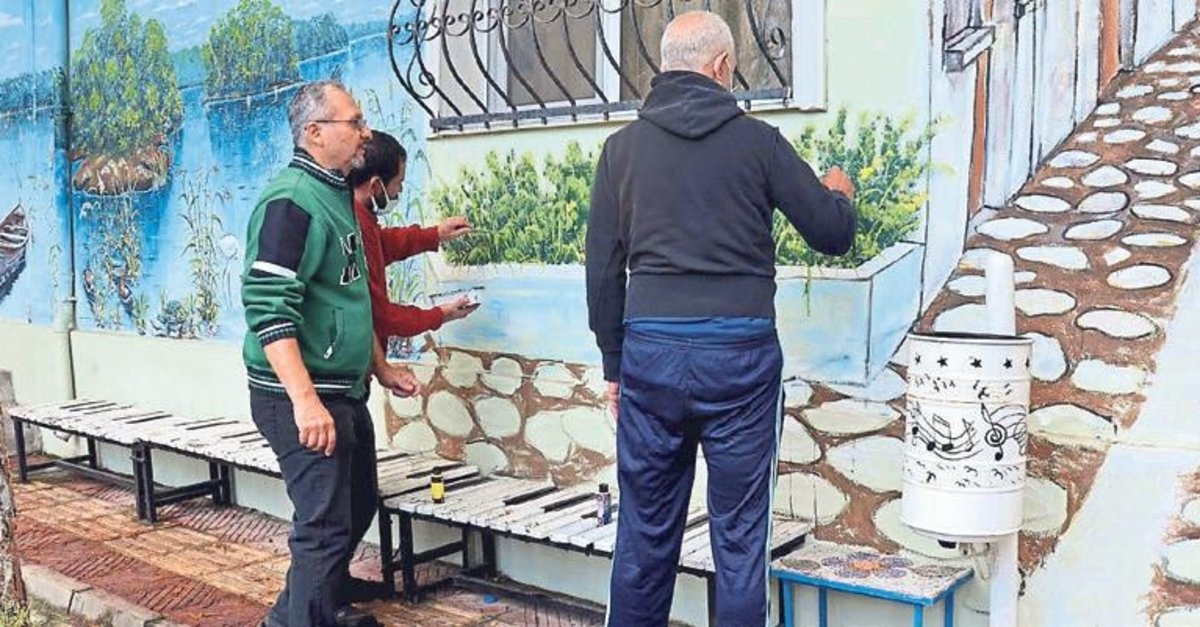 Çeşitli hayvan figürleri ve çiçeklerle bezenen duvarları resim öğretmeni eşliğinde boyayan hastalar eğlenceli vakit geçiriyor. Başhekim Yardımcısı Psikiyatri Uzm Oktay Koçabaş, "Halk eğitim merkezince görevlendirilen resim öğretmeni ve hastalar birlikte duvarları renklendiriyor. Hastaların iyileşme süreci olumlu etkileniyor" dedi.