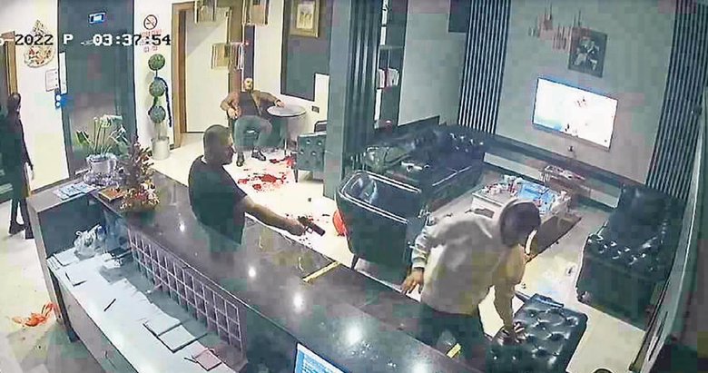Otel sahibinin kardeşi Ömer E. ve çalışanlar, kendilerine silah çeken kişiyi etkisiz hale getirmeye çalışırken arbede yaşandı. Arbede sırasında Ömer E. saldırganın yanındaki diğer kişi tarafından bacağından bıçaklandı.