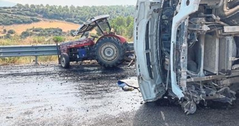 Manisa'da devrilen kamyonun, çarpıp önünde sürüklediği traktördeki Nahide Kahraman (44) hayatını kaybetti, 1'i çocuk, 4 kişi yaralandı. Kaza, saat 08.30 sıralarında Sarıgöl ilçesi Selimiye Mahallesi'nde Alaşehir- Denizli kara yolunun Manisa Sarıgöl rampasında meydana geldi. Uğur K.'nin (64) direksiyon kontrolünü yitirdiği kamyon, devrilip aynı yönde seyreden traktöre arkadan çarptı. Kamyon, 300 metre kadar traktörü önünde sürükledi. Kazada, traktördeki yolculardan Nahide Kahraman hayatını kaybederken, sürücü Ragıp Kahraman (45) ve çocukları Doğukan Kahraman (7), Gülcan Kahraman (20) ile kamyon şoförü Uğur K. (64) yaralandı.