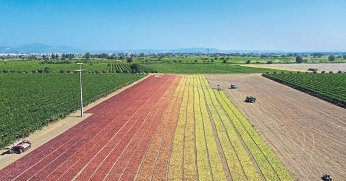Manisa'dan geçen İzmir-İstanbul yolunun her iki tarafındaki üzüm kurutma sergileri dronla görüntülendi. Renk cümbüşünün yaşandığı ovada üreticiler sabahın ilk ışıklarıyla, bir yıllık emeklerinin karşılığını almak için harıl harıl çalışırken, rekoltenin geçen seneye göre düşük olması sergileri de etkiledi. Bu sene yaşanan hastalık ve hava şartlarından rekoltenin düşük olduğunu kaydeden üzüm üreticisi Osman Özsoy, "Yoldan geçerken sergileri görenler buraya geliyor fotoğraf çekiyorlar, birlikte fotoğraf çektiriyoruz" dedi.