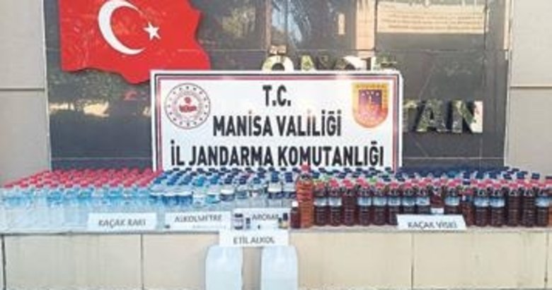 MANİSA'NIN Salihli ilçesinde jandarma ekipleri tarafından bir eve düzenlenen operasyonda pet şişeler içinde 39 litre sahte rakı ve 17.5 litre sahte içki ele geçirildi. Edinilen bilgiye göre, Manisa İl Jandarma Komutanlığı Kaçakçılık ve Organize Suçlarla Mücadele (KOM) Şube Müdürlüğü ile Salihli İlçe Jandarma Komutanlığı ekipleri, C.U'yu gözaltına aldı. Olayla ilgili soruşturma başlatıldı.