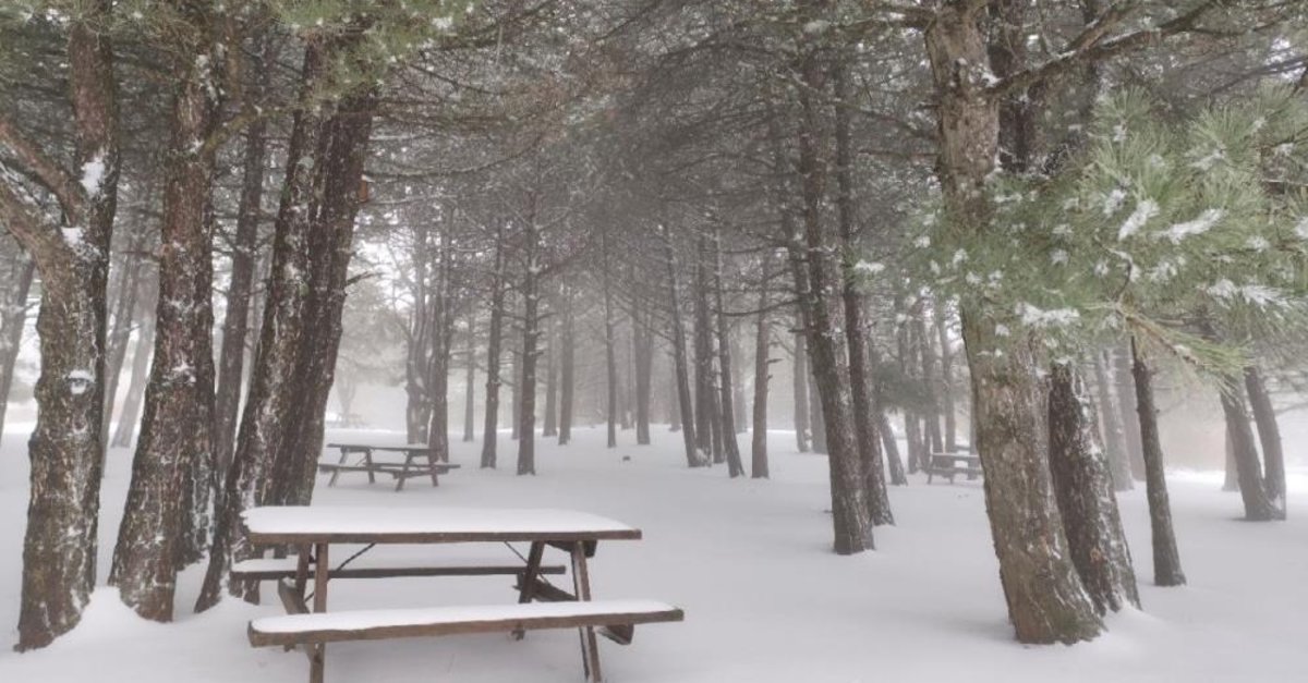 Manisa'da Spil Dağı Milli Parkı'na çıkan yolda Sultan Yaylası mevkiinden itibaren karla kaplanan Spil Dağı'nda bin 210 metre rakımlı Milli Park sahasında yer alan Atalanı günübirlik piknik alanı mevkiinde kar kalınlığı 10 santimetreye ulaştı