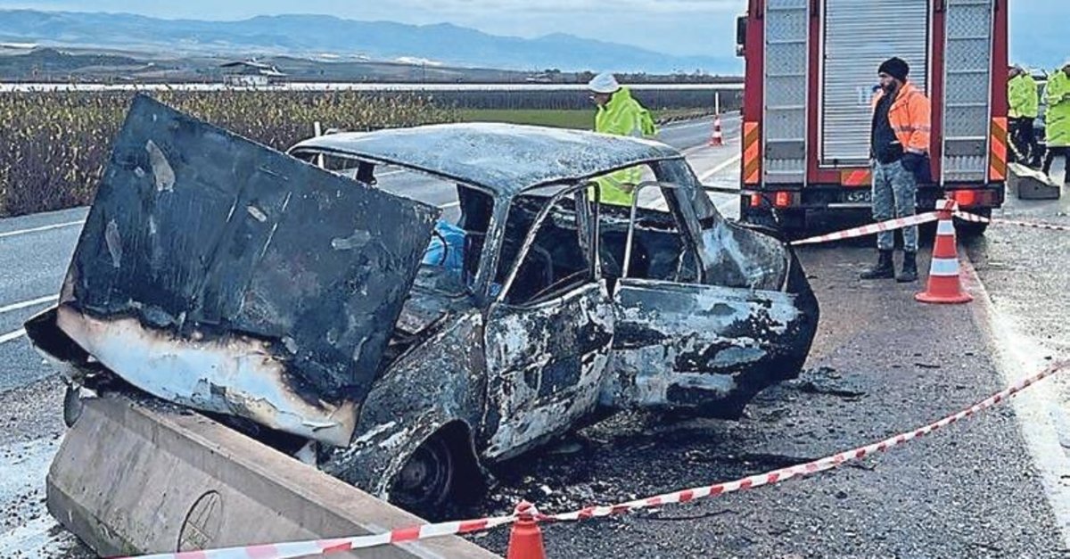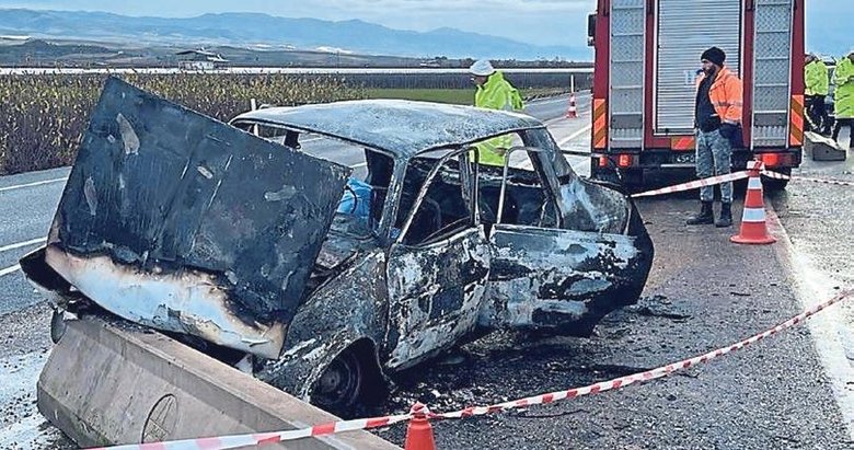 Çarpmanın etkisiyle bir anda alev topuna dönen araçta bulunan sürücü Dündar ve eşi Emine Dündar (70), feci şekilde yanarak can verdi. Çiftin akraba ziyaretinden döndükleri öğrenildi.