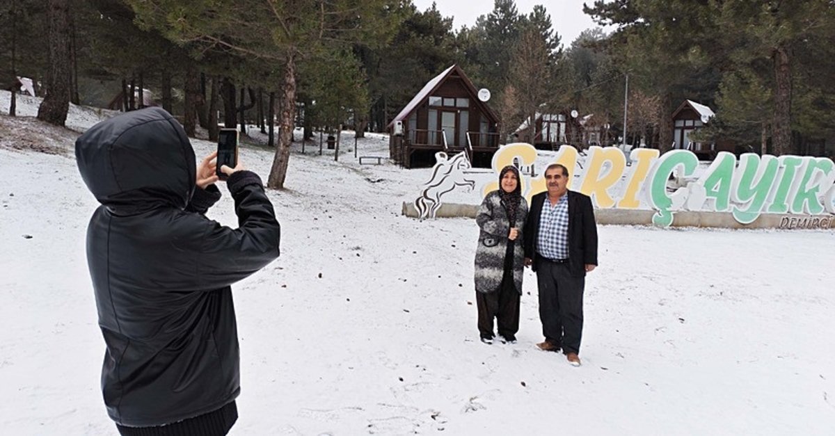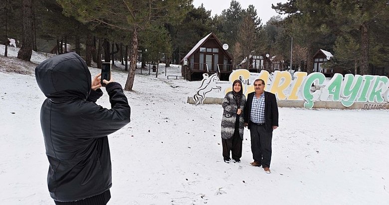 Demirci ilçesinin yüksek kesimlerinde sabah saatlerinde kar yağış başladı. Yağışla birlikte ilçenin yaylaları ve dağlık alanları beyaz örtüyle kaplandı. Yılın ilk karıyla birlikte güzel görüntüler oluştu. Kar yağışı, Demirci'nin Sarıçayır Kamp Merkezi, Türkmen Tepe mevkisi ile 1470 rakımlı Akçakertik mevkisinde de etkisini gösterdi. Yağışla birlikte bölgede oluşan manzara dron ile havadan görüntülendi. Kar yağışını fırsat bilen bazı vatandaşlar, aileleriyle birlikte Sarıçayır mevkisine çıktı. Beyaz örtüyle kaplanan alanlarda yürüyüş yapan vatandaşlar, kar manzarası eşliğinde hatıra fotoğrafı çektirdi.