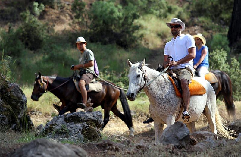 İkinci turda ise ormandaki patikaları at sırtında gezen turistler, eşsiz güzellikteki Ölüdeniz'i yüksek bir yamaçtan izleme fırsatı buluyor.