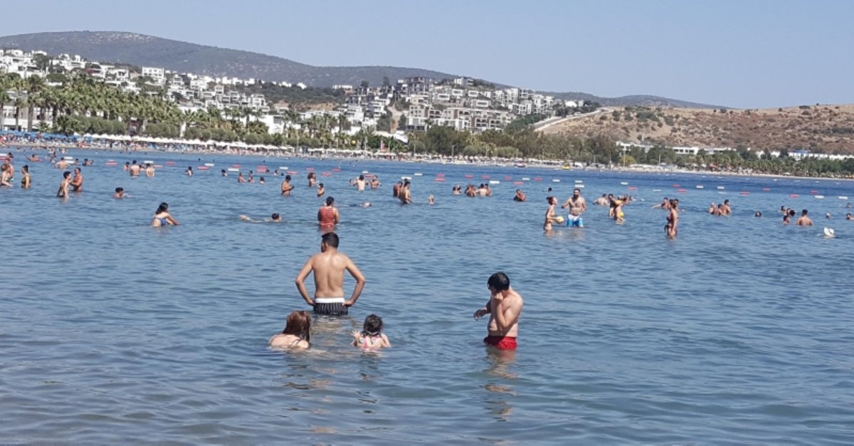 Muğla'nın Bodrum ilçesindeki plajlar, Kurban Bayramı'nın ikinci gününde tatilcilerle doldu.
