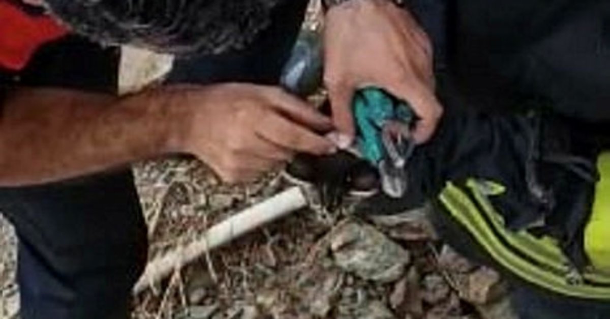 Muğla'nın Bodrum ilçesinde, boynuna plastik parça takılan yavru kedi, itfaiye ekiplerince kurtarıldı.