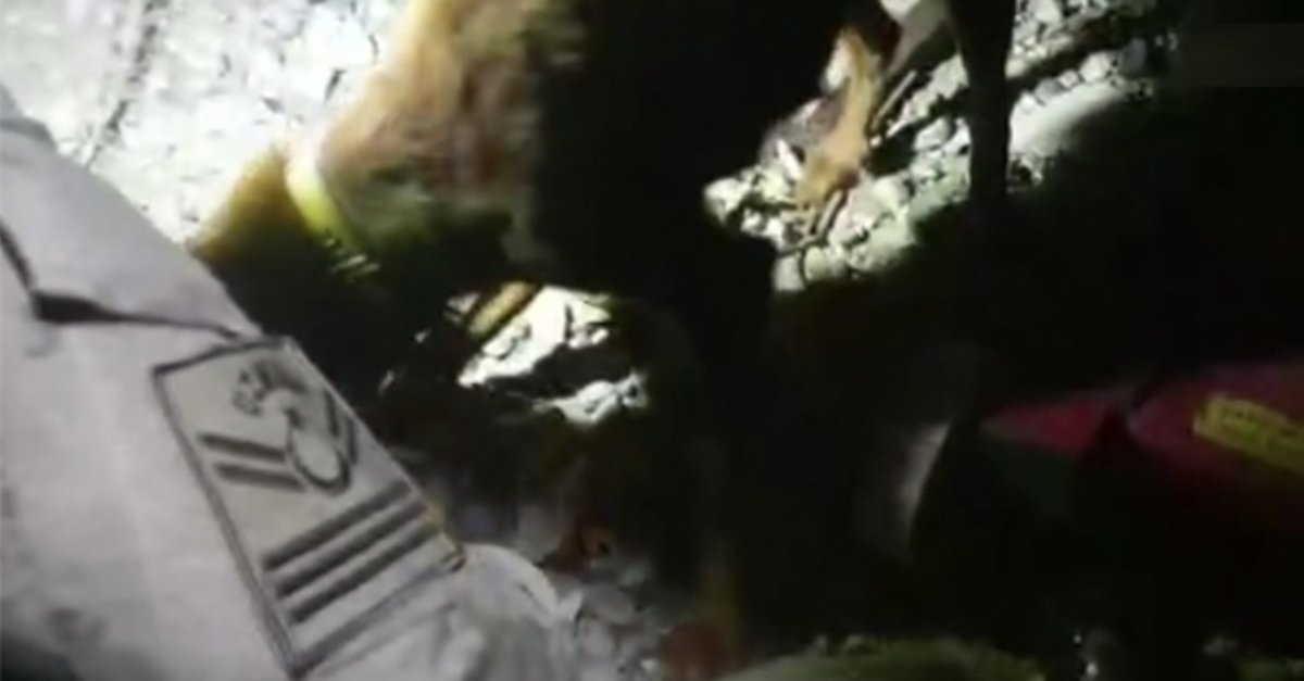 Paylaşılan görüntüde ise yavru köpeklerin taş yığınları arasından kurtarılarak, anneleri ile buluşturulması, jandarmanın da köpeği elleriyle beslemesi yer aldı.