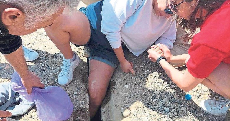 Hamile kadının ayağını bulunduğu yerden çıkaramayan yakınları yardım çağrısında bulundu. Vatandaşların ihbarı ile olay yerine sağlık ve itfaiye ekipleri geldi. İtfaiye ekiplerinin kadını kurtarmasının ardından ilk tedavisi yapıldı. Bacağı zedelenen ve hamile olan B.K. daha sonra kontrol amaçlı Datça Devlet Hastanesi'ne kaldırılarak tedavi altına alındı.