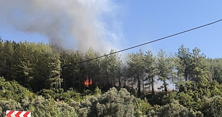 Havadan ve karadan müdahale edilen yangın kontrol altına alınmaya çalışılıyor.