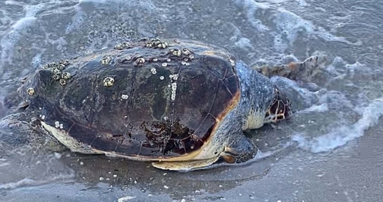 Bölgede son 1 ayda ikinci ölü deniz kaplumbağası bulunduğu belirtildi.