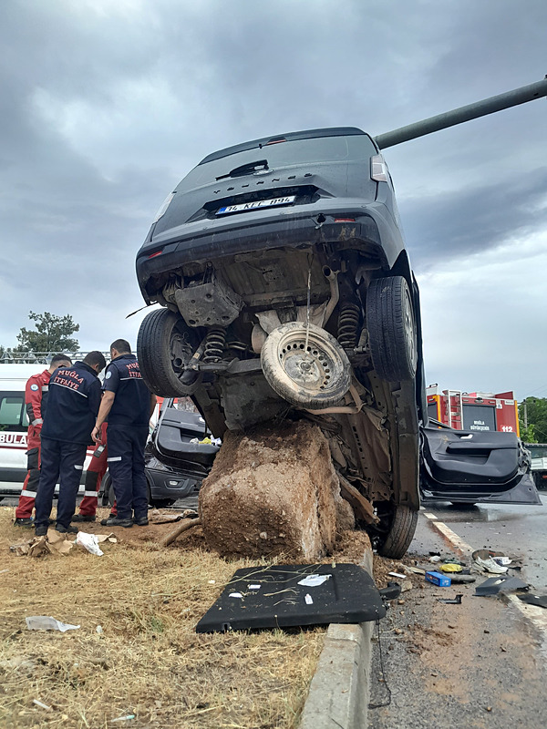 Araçta sıkışan ve itfaiye ekiplerince bulunduğu yerden çıkarılan sürücünün hayatını kaybettiği belirlendi.
