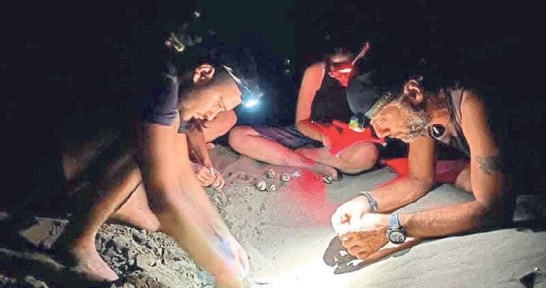 YUMURTA bırakmak için yaklaşık 2 ay önce kumsala çıkan bir kaplumbağanın çukur açarken zorlandığını fark eden DEKAMER alan sorumlusu Birol Çakıroğlu, ekip arkadaşlarıyla harekete geçti. Ekipler kaplumbağanın, ön yüzgeçlerinde bulunan markadan 2021'de merkezde tedavi gördükten sonra arka ayağı ampute edilerek denize bırakılan "Atlas" isimli dişi deniz kaplumbağası olduğunu tespit etti. Deniz kaplumbağasının yumurta bırakması için kazacağı yaklaşık 60 santimlik çukur, alandaki görevli gönüllüler tarafından hazırlandı ve "Atlas" yumurtalarını bıraktı. O anları kayıt altına alan ekipler, kuluçka süresinin ardından hayvanın yavrularının çıkışını da izledi. Yuvadan çıkan kaplumbağalar görevlilerin gözetiminde denizle buluştu.