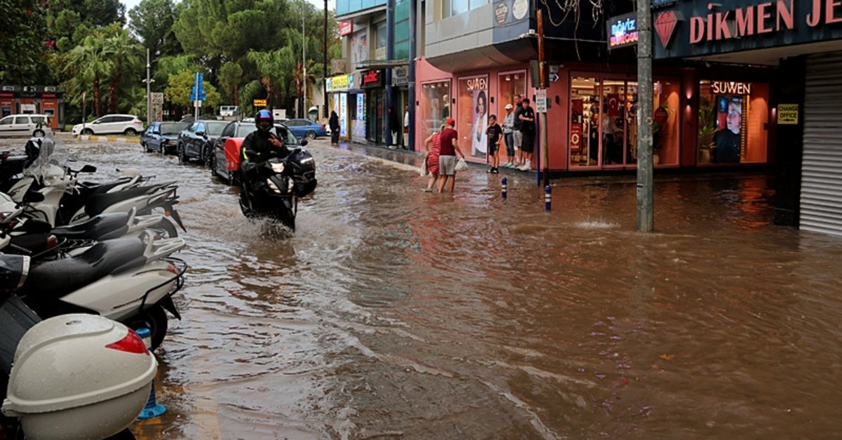 Meteoroloji'nin uyarısının ardından Fethiye'de sağanak yağış etkili oldu. Yaklaşık bir saat süren şiddetli yağış sonrası Fethiye ilçe merkezi Venedik'e döndü.