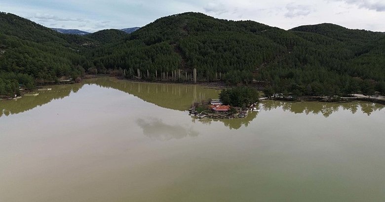 Dronla görüntülenen gölette; su seviyesindeki artış net şekilde gözlemlenirken, çevresindeki yeşil alanların da yeniden hayat bulduğu görüldü.