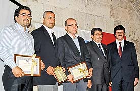 BERTO eski başkanlarından Ali İhsan Süter, Oda'nın en eski üyesi Abdülkadir Özdil ve en genç girişimci-yatırımcı üye Bekir Sıtkı Harman.