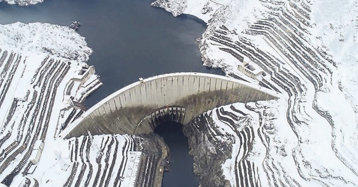 ARTVİN'DE, Çoruh Nehri üzerinde temeli yapımına 1998 yılında başlanan, 249 metre gövde yüksekliği ile Türkiye'nin en yüksek, dünyanın ise 6. yüksek gövdeli barajı olan Deriner Barajı ve Hidroelektrik Santrali'nin (HES), beyaza bürünmüş hali havadan görüntülendi. Barajda 2019 yılında 1 milyar 684 milyon 993 bin 298 kWh enerji üreterek, milli ekonomiye 387 milyon 548 bin 459 TL katkı sağladı. 1998 yılında temeli atılan ve 14 yıl süren baraj, Türkiye'nin en yüksek enerji üreten barajı oldu.