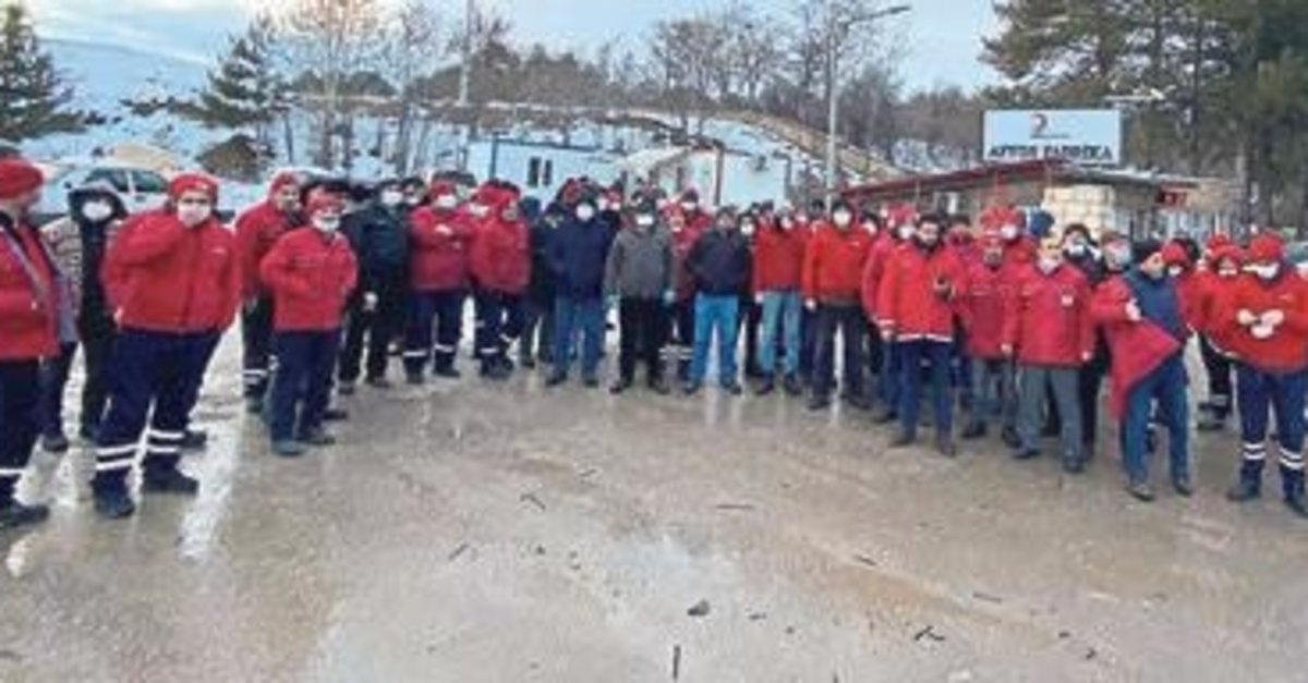 TÜRK Kızılay'ı Afyonkarahisar Maden Suyu Fabrikası'nda çalışan 100'ün üzerinde işçi özlük haklarını alamadıkları gerekçesiyle üretimi durdurarak eyleme başladı. İhsaniye ilçesine bağlı Gazlıgöl beldesindeki fabrikanın işçileri maaş, ikramiye, giyecek ve yakacak yardımı gibi sosyal hakların verilmediğini öne sürdüler. Türk-İş'e bağlı Tek Gıda İş Sendikası yetkilileri, haklarını alana kadar eylemleri sürdüreceklerini bildirdi. ■ MURAT ŞENBAKLAVACI
