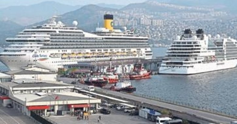 İZMİR Alsancak Limanı, Ege Denizi üzerinde tur yapan iki dev yolcu gemisini ağırladı. Costa Fortuna adlı 500 mürettebatlı 280 metre uzunluğundaki kurvaziyer, büyük bölümü İtalya'dan gelen yaklaşık 2 bin 500 yolcuyu İzmir Alsancak Limanı'na getirdi. Seabourn Encore adlı 210 metre uzunluğundaki gemi çoğunluğunu ABD'li ve İngiliz turistlerin oluşturduğu 600'e yakın yolcuyla limana demirledi. Yolcuların önemli bölümü Efes ve Bergama'ya düzenlenen gezilere katılırken bazı yolcular ise şehir merkezinde vakit geçirmeyi tercih etti.