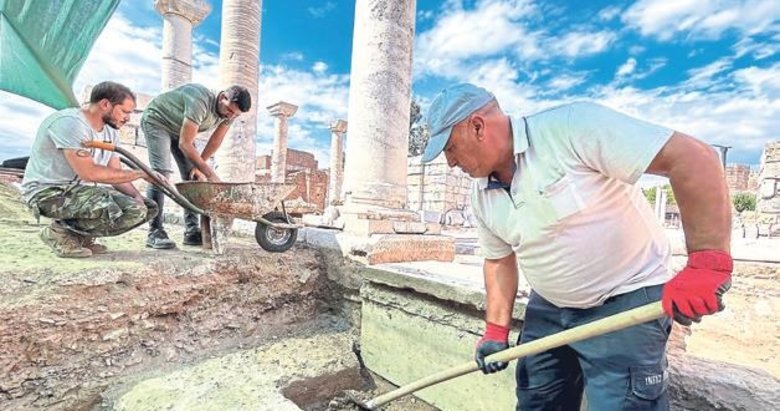 Lahitin üzerinde epik kitabeler, iç tarafında ise M.S. 5. yüzyılda tekrar işlendiği belirlenen 3 adet haç kabartması bulunuyor. Doç. Dr. Sinan Mimaroğlu, çalışmalar sırasında kendilerini şaşırtan olayın, toprağın hemen 20 santim aşağısında su kanalı, künk sitemi, mozaiklerin yanı sıra; alanda 1 tane lahit ve 3 tane lahit formlu örme mezarın olduğunu ve lahitin içinde 12 tane bireyin ortaya çıktığını ifade etti.